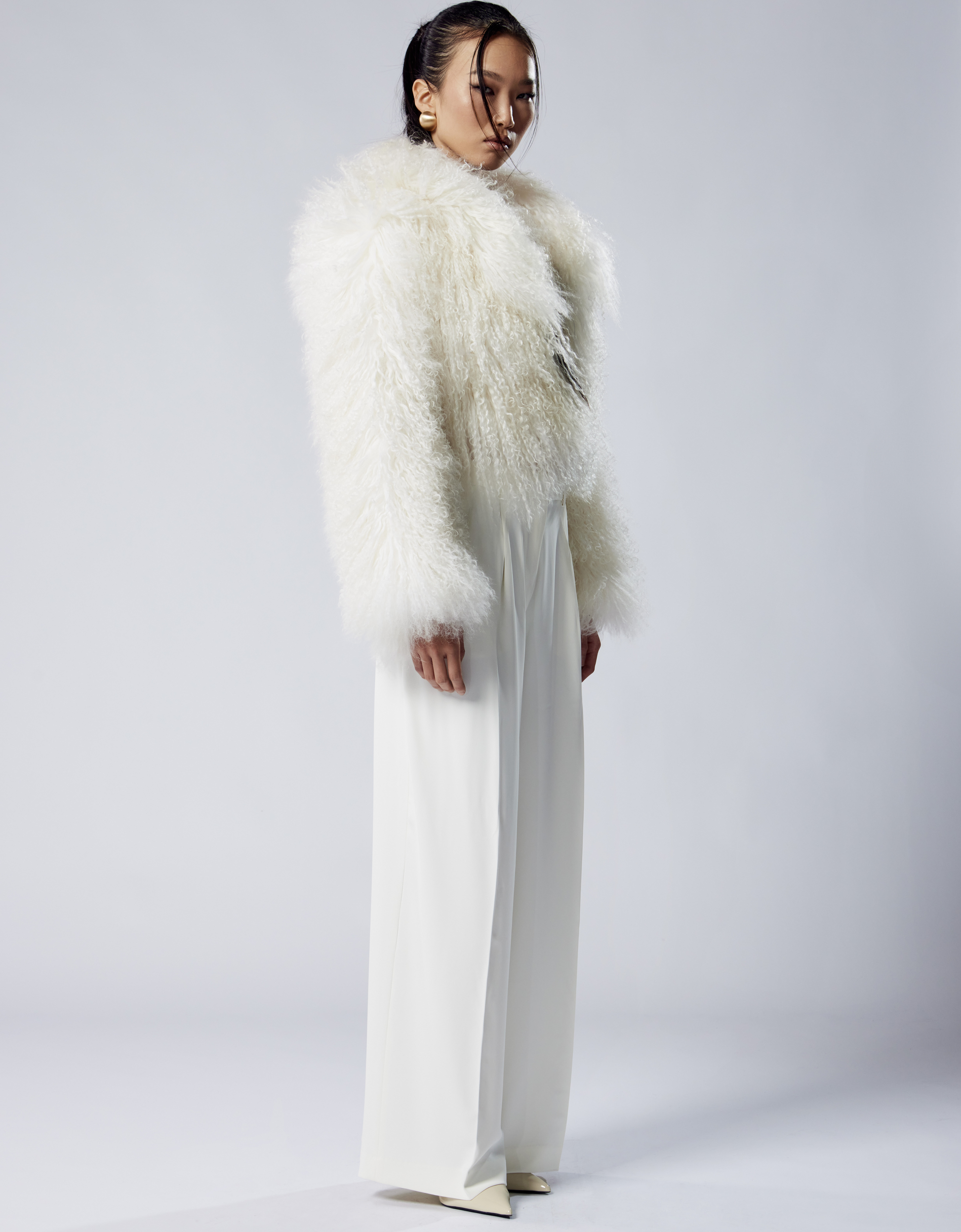 Cut from the most sumptuous, Mongolian sheepskin, this coat makes a statement wherever it goes. The natural curly finish and the discreetly concealed fastenings make this piece feel as chic as it is cosy.